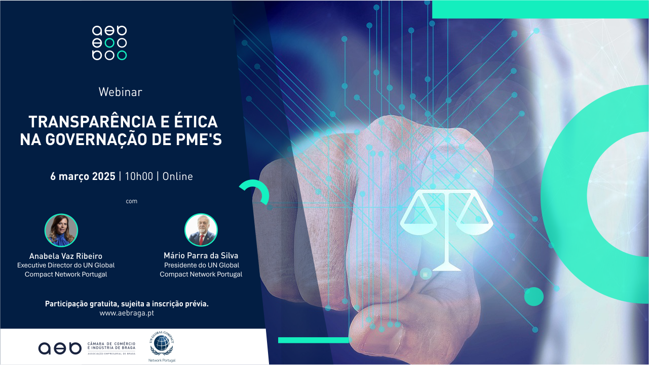 A Associação Empresarial de Braga, em parceria com a United Nations Global Compact, promove no próximo dia 6 de março, pelas 10h, um webinar essencial para PME’s que procuram reforçar a transparência, ética e integridade na gestão empresarial. Com a crescente exigência por boas práticas de governação, esta sessão abordará orientações estratégicas para fortalecer a conformidade e a confiança dentro das organizações, bem como a aplicação do Regime Geral da Prevenção da Corrupção (RGPC), um enquadramento legal obrigatório para as PME’s.